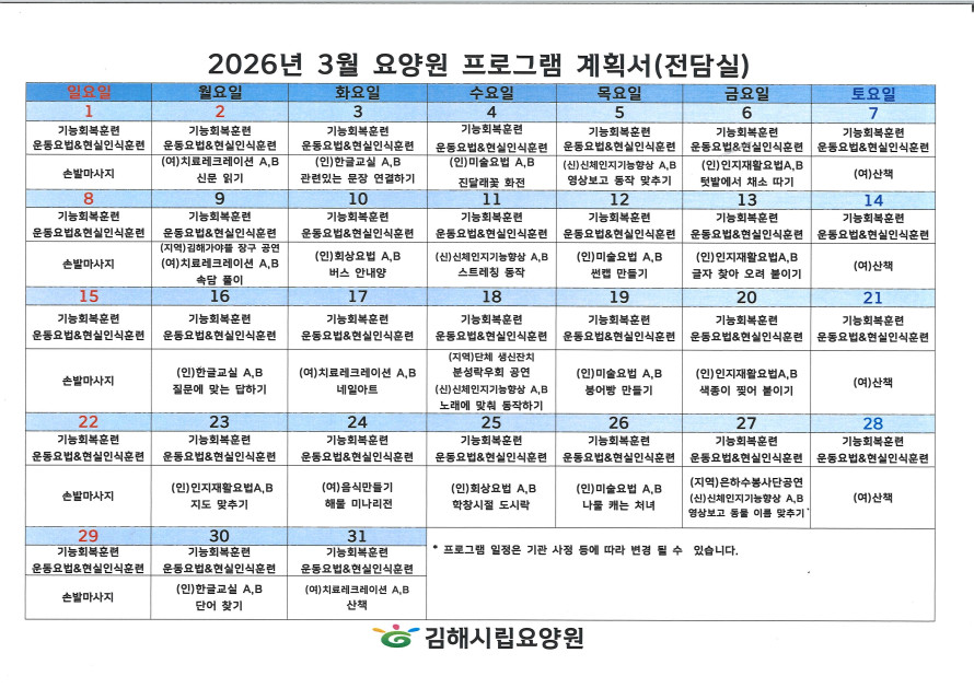 김해시립요양원(전담실) 3월 프로그램 일정표