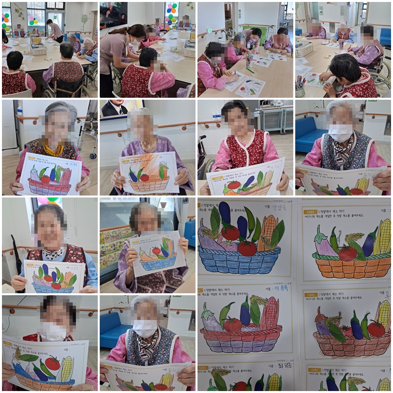 어르신들과 텃밭 이야기를 하며 활동지를 완성해 보는 시간을 가졌습니다.~^^