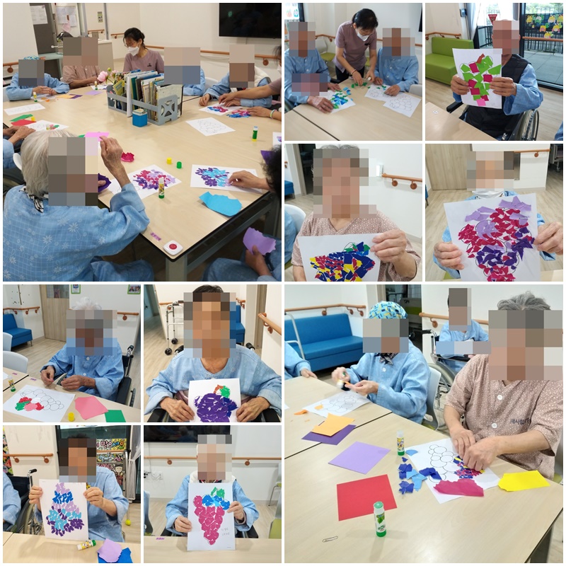 어르신들과 포도송이 모자이크를 만들어 보았습니다.~^^