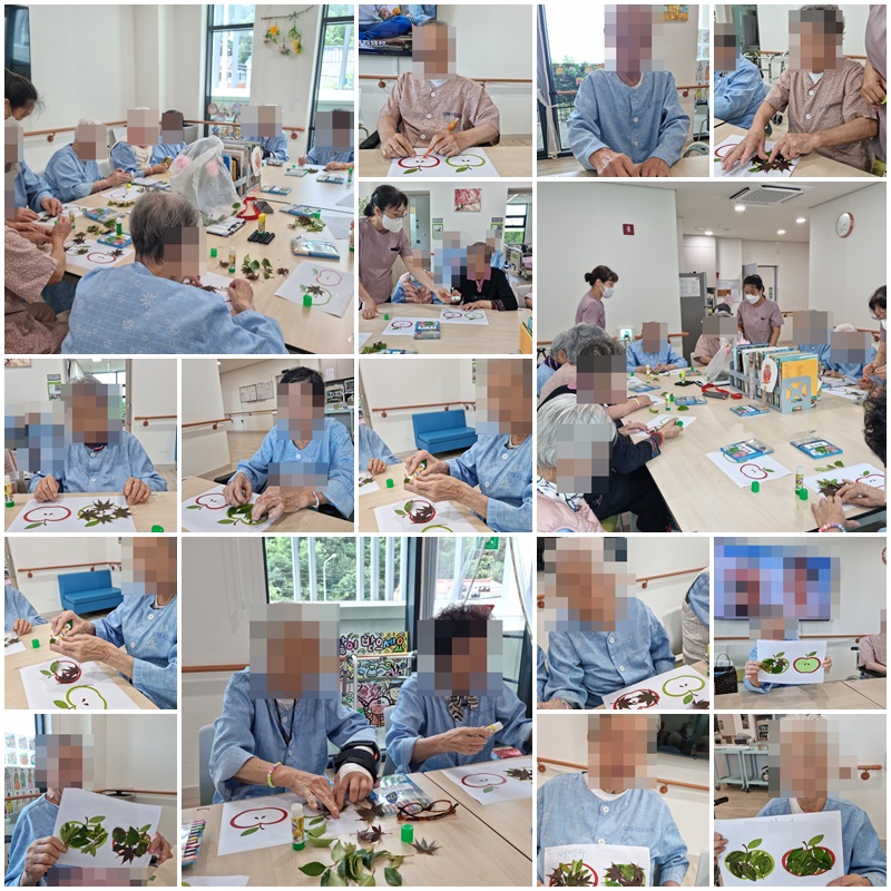어르신들과 나뭇잎으로 사과를 완성해 보았습니다~^^