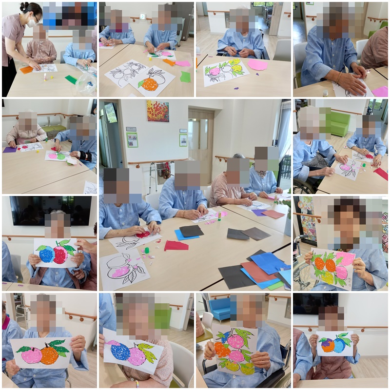 색종이 찢어 붙여 복숭아를 완성해보는 시간을 가졌습니다. ~^^