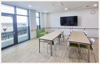 생활실, 거실 겸 프로그램실, 식당, 사무실, 물리치료실, 세탁실, 휴게실, 자원봉사자실 등