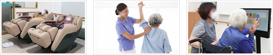 | 기능회복프로그램 | 마사지, 공예활동, 요리교실, 미술치료, 레크레이션, 감각자극발달, 인지학습 등 |