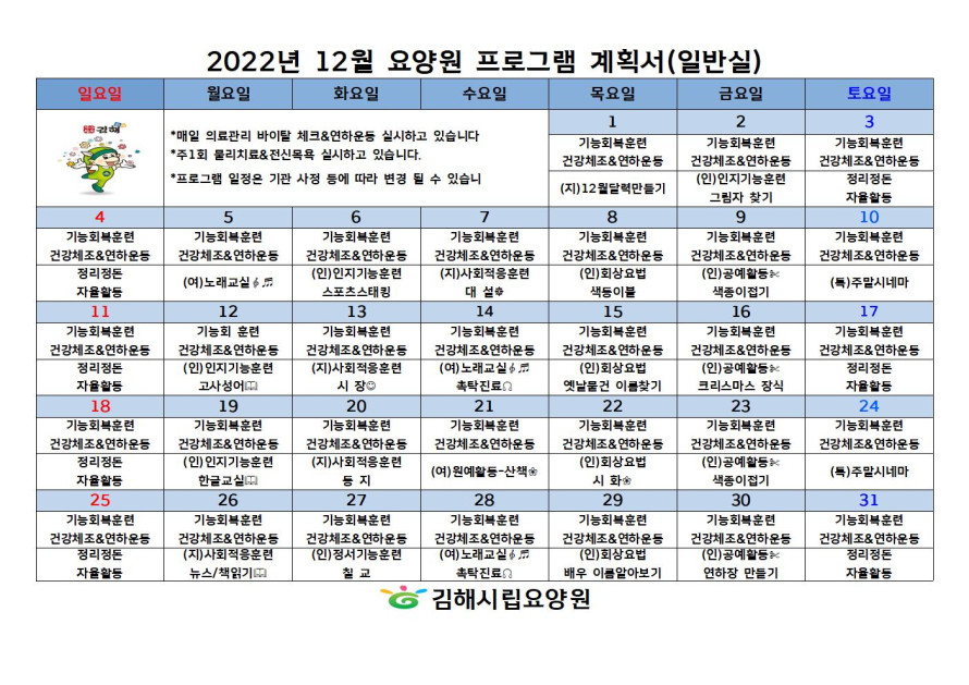 김해시립요양원(일반실) 12월 프로그램 일정표