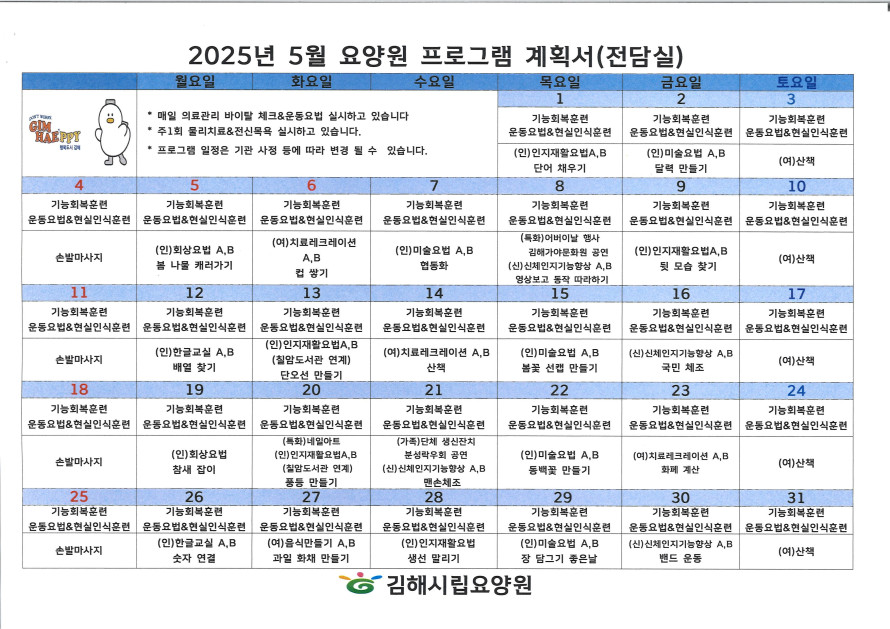 김해시립요양원(전담실) 5월 프로그램 일정표