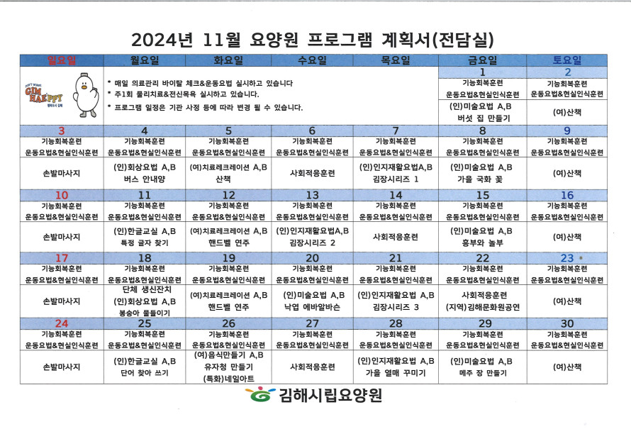 김해시립요양원(전담실) 11월 프로그램 일정표