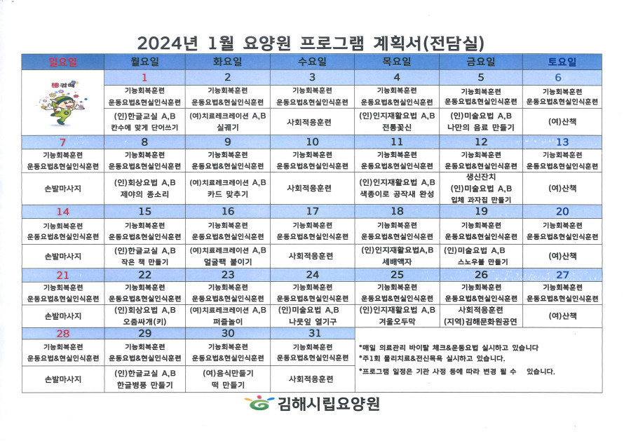 김해시립요양원(전담실) 1월 프로그램 일정표