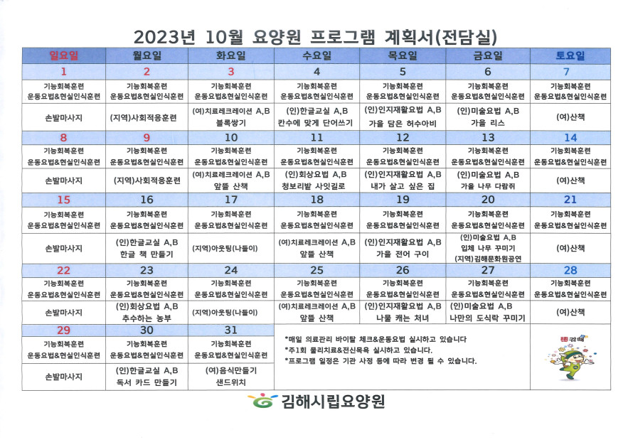 김해시립요양원(전담실) 10월 프로그램 일정표
