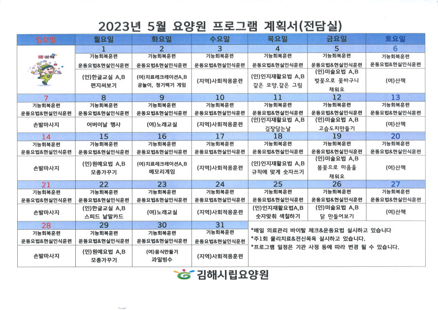 김해시립요양원(전담실) 5월 프로그램 일정표