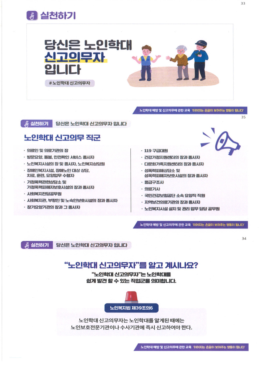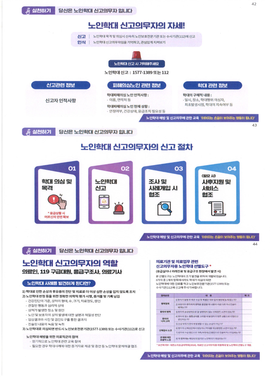 노인학대예방 셋!! 당신은 노인학대 신고의무자 입니다. (출처 : 중앙노인보호전문기관)