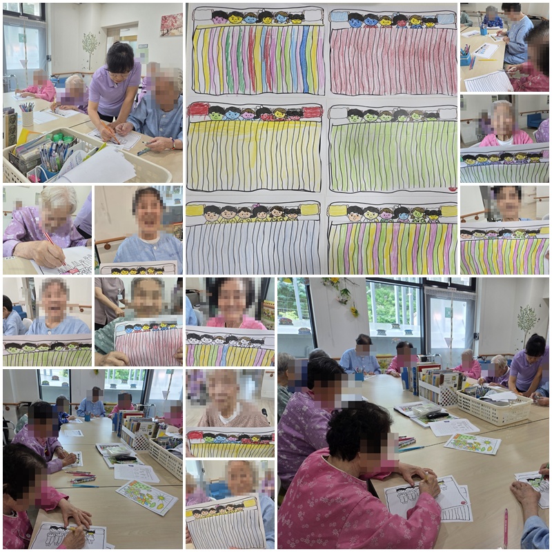 색동 이불에 얽힌 어린 시절 추억 이야기를 하며 활동지를 완성해 보는 시간을 가졌습니다. ~^^