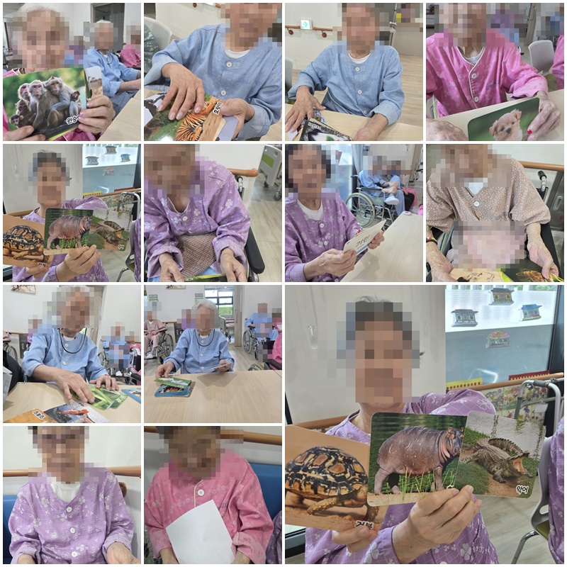 어르신들과 동물, 한글 카드 맞추기를 팀 별 게임으로 진행하였습니다. ~^^