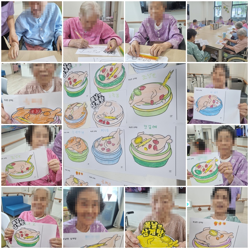 어르신들과 여름의 끝자락인 말복에 대해 이야기를 나누어 보고 활동지를 완성해보는 시간을 가졌습니다.~^^