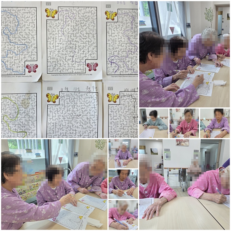 어르신들과 미로 찾기 활동지를 해보는 시간을 가졌습니다. ~^^