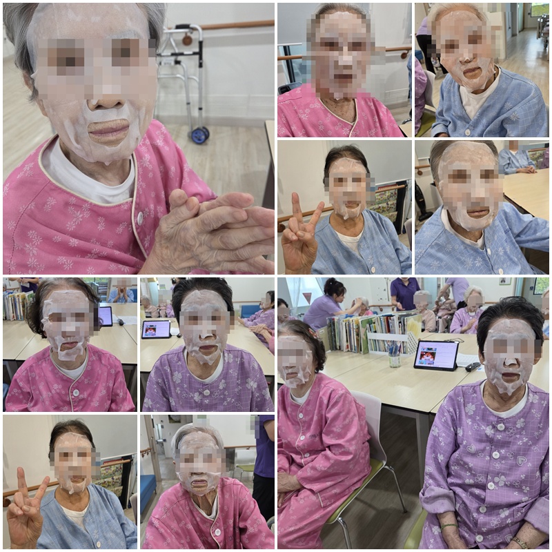 어르신들과 팩으로 얼굴 피부 관리를 해보는 시간을 가졌습니다.`^^