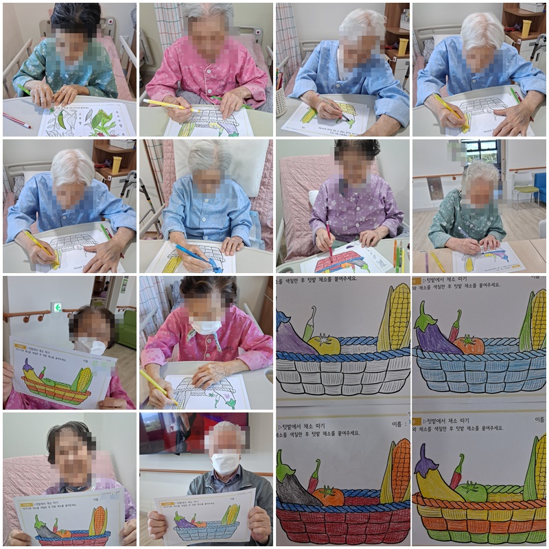 어르신들과 채소 이름 대기 게임을 해보며 활동지를 완성해 보는 시간을 가졌습니다.~^^