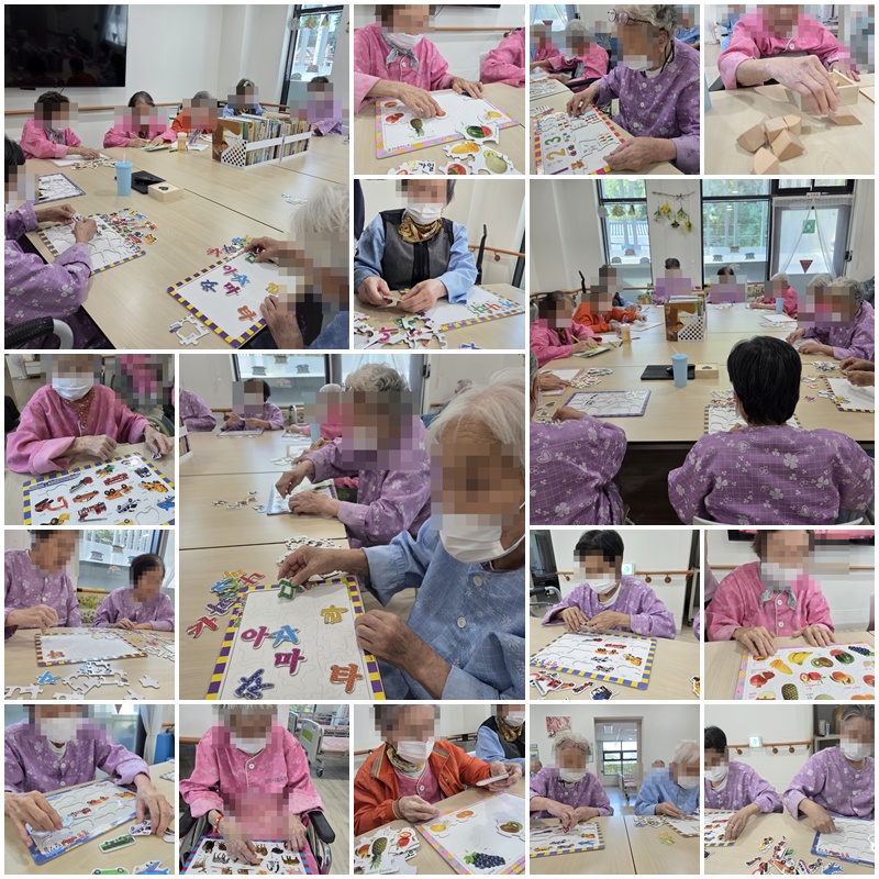어르신들과 동물, 한글, 숫자 퍼즐을 하며 즐거운 시간을 보내셨습니다. ~^^