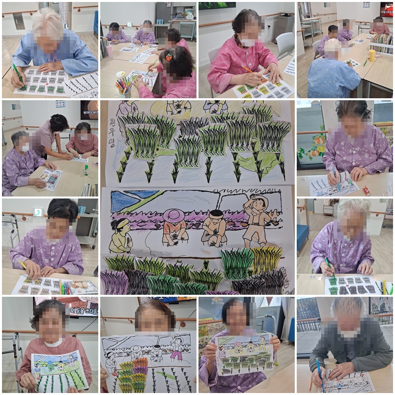 어르신들과 농사 짓는 법에 대해 이야기 나누며 모내기 활동지를 입체적으로 꾸며보는 시간을 가졌습니다.