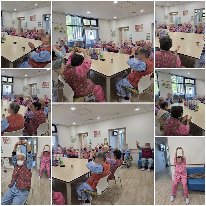 어르신들의 신체 기능에 맞게 맞춤형 스트레칭 동작 영상을 보고 따라해보는 시간을 가졌습니다.~^^