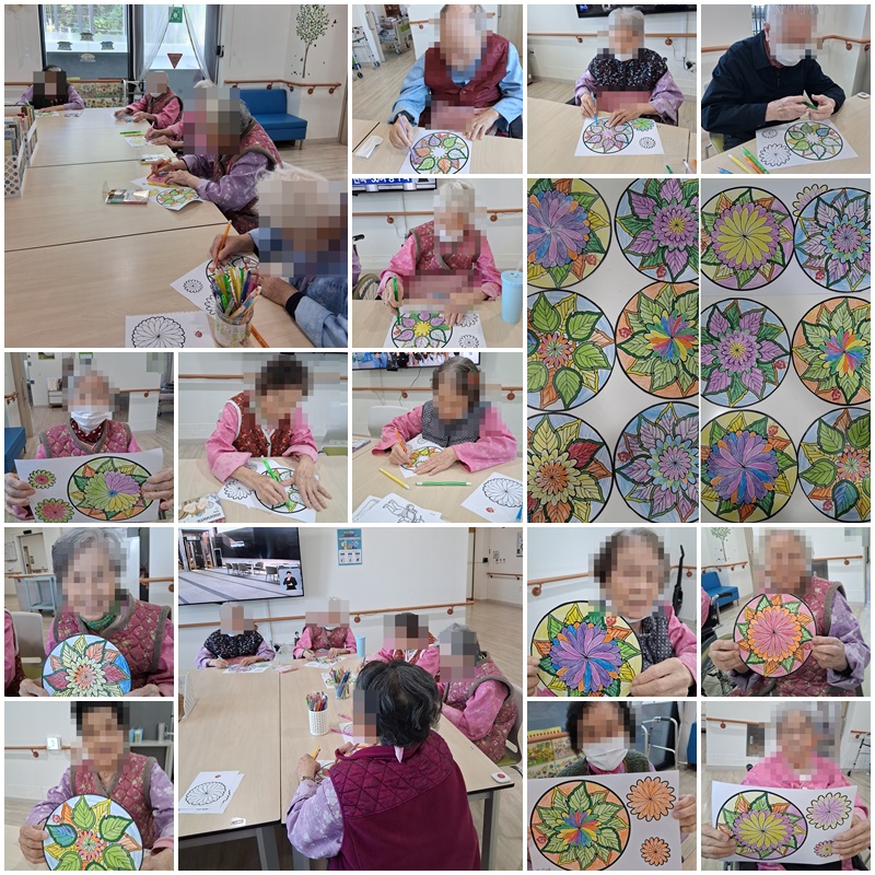 어르신들과 국화를 이용해 만다라를 꾸며보는 시간을 가졌습니다. ~^^