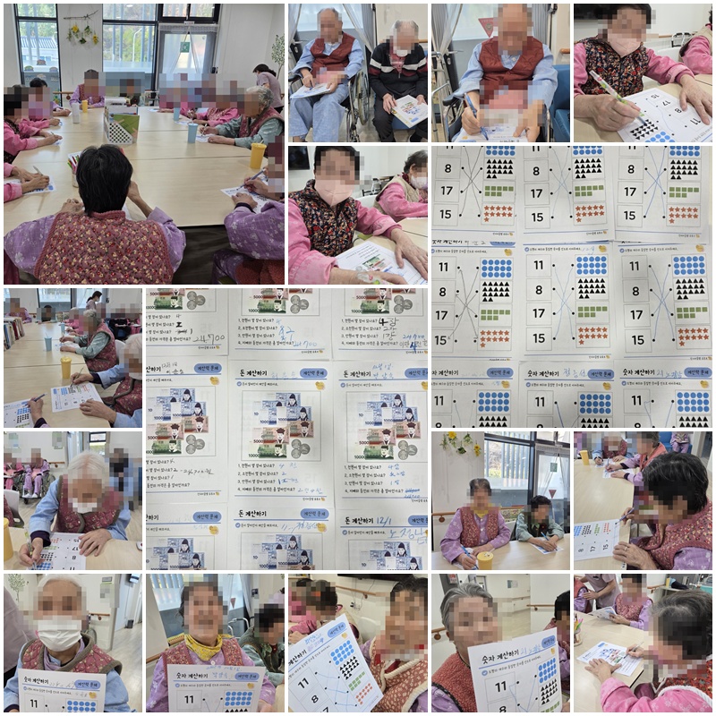 어르신들과 숫자 게임 놀이를 하며 활동지를 완성해 보는 시간을 가졌습니다.~^^