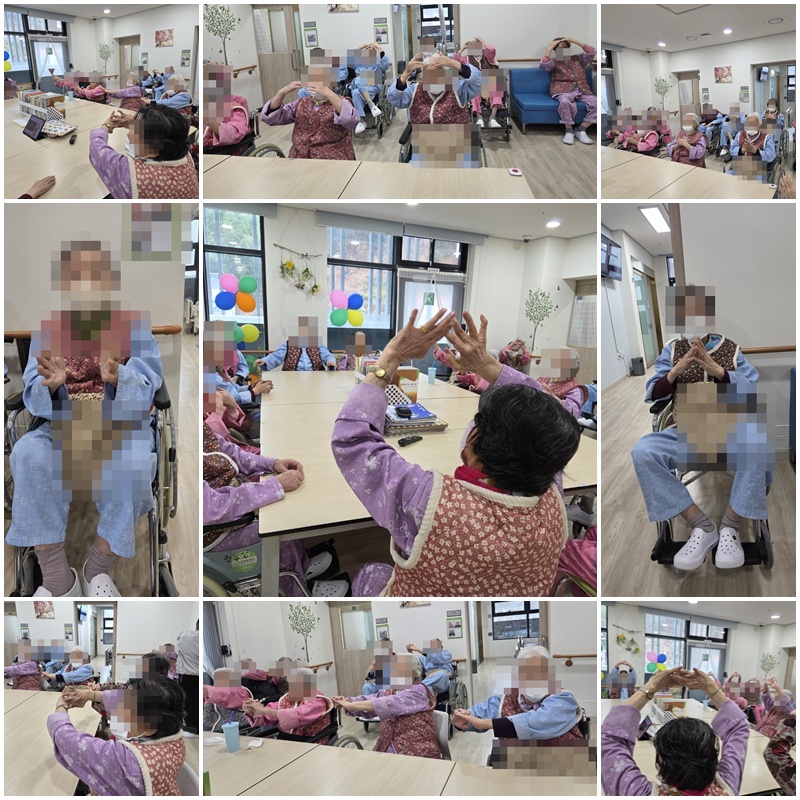 어르신들과 맨손 체조를 영상을 보며 따라 해보는 시간을 가졌습니다.~^^