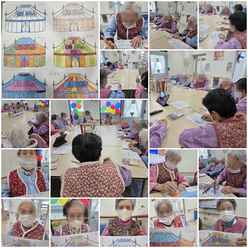 어르신들과 옛날에 많이 구경 다녔던 서커스 이야기하며 활동지를 완성해 보는 시간을 가졌습니다. ~^^