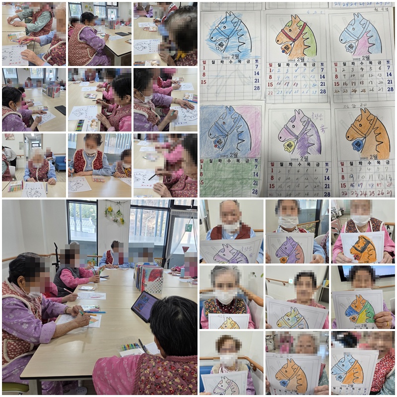 어르신들과 숫자를 쓰고, 그림을 색칠하여, 2월 달력을 완성해 보는 시간을 가졌습니다. ~^^