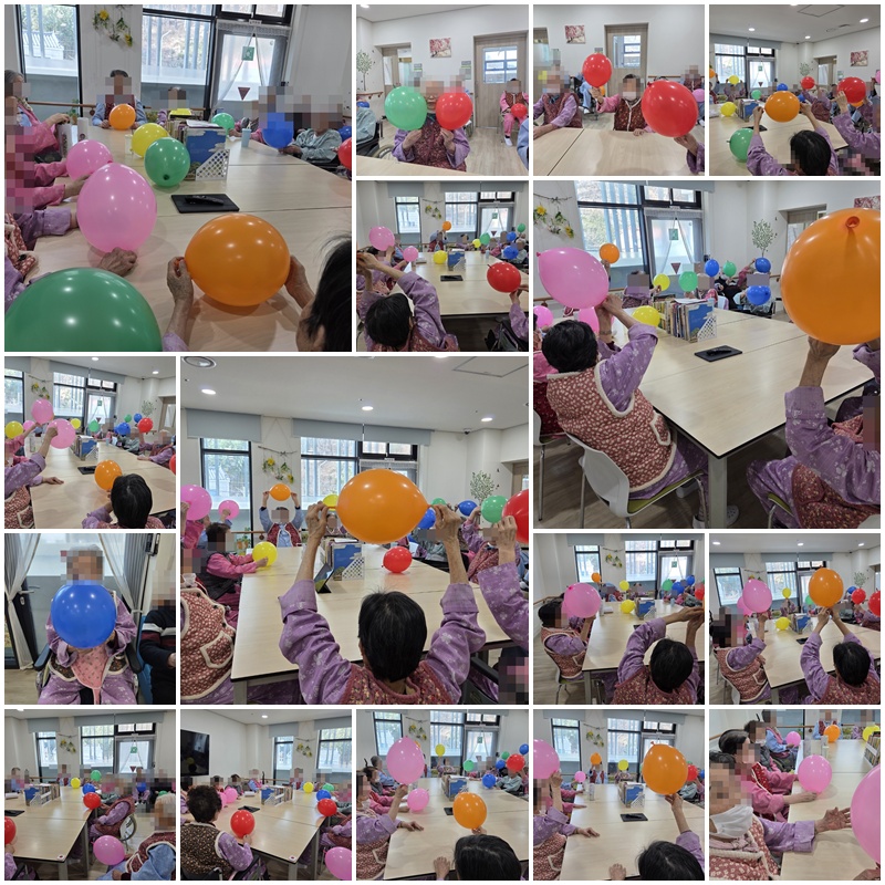 어르신들과 풍선으로 스트레칭 동작을 따라하며 팀 별 게임을 해보는 시간을 가졌습니다. ~^^