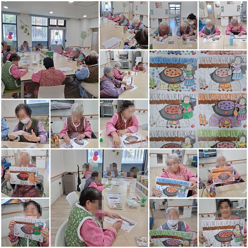 어르신들과 전래 동화를 읽어보고 팥죽 할머니 활동지를 완성해 보는 시간을 가졌습니다. ~^^