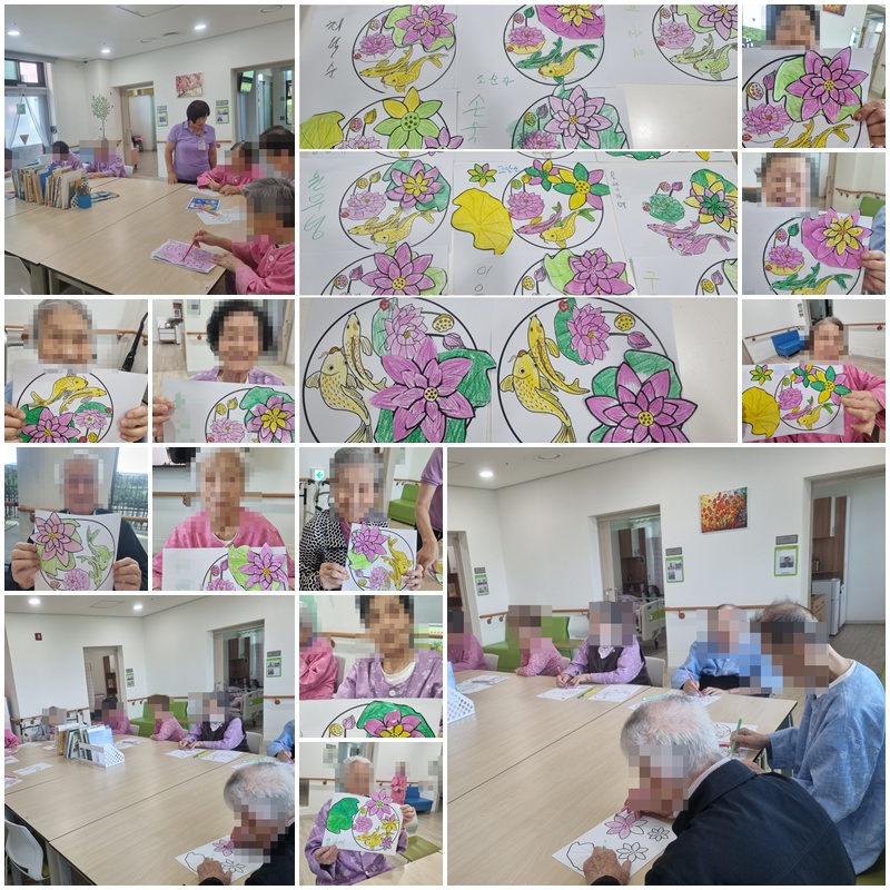 어르신들 연꽃과 비단 잉어 활동지를 입체적으로 꾸며보는 시간을 가졌습니다.~^^