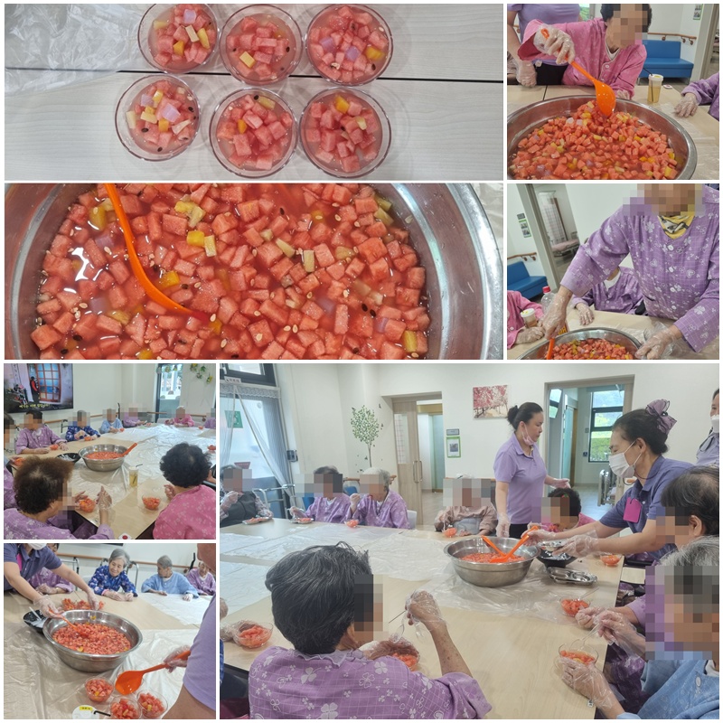 어르신들과 시원한 수박 화채를 만들어 맛있게 먹어 보는 시간을 가졌습니다. ~^^