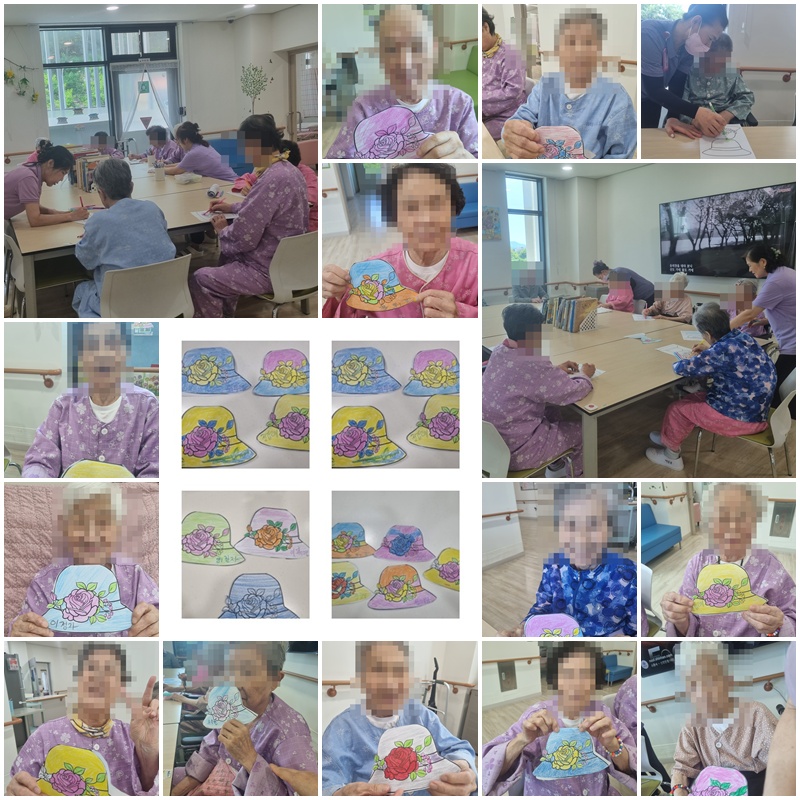 어르신들과 활동지를 이용하여 입체적인 모자를 만들어 보았습니다.~^^