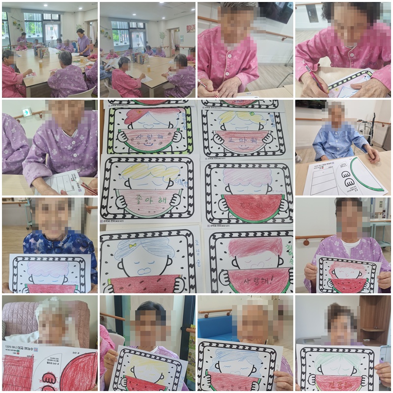 어르신들과 수박 활동지에 소망을 적어보는 시간을 가졌습니다.~^^