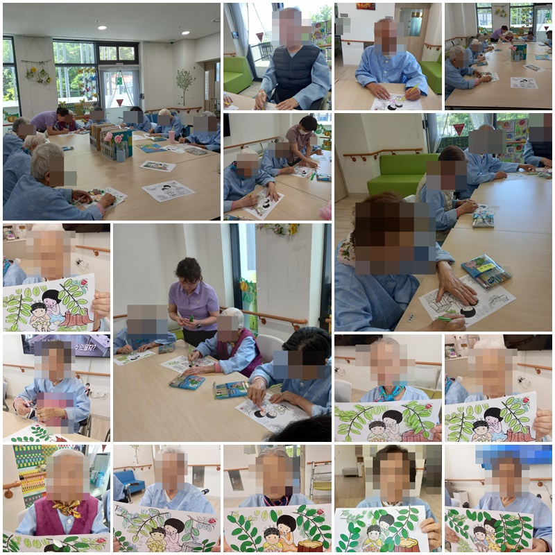 아카시아 꽃잎으로 파마를 했던 경험을 말씀하며 활동지를 완성해 보는 시간을 가졌습니다. ~^^