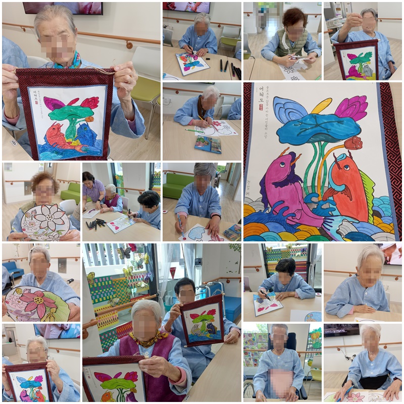 민화 따라 그리기, 족자 만들기를 해보는 시간을 가졌습니다. ~^^