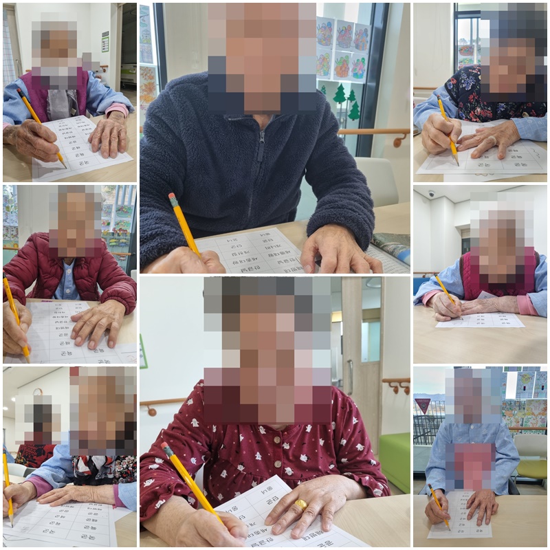 어르신들과 단어를 써보며 읽어보는 시간을 가졌습니다.