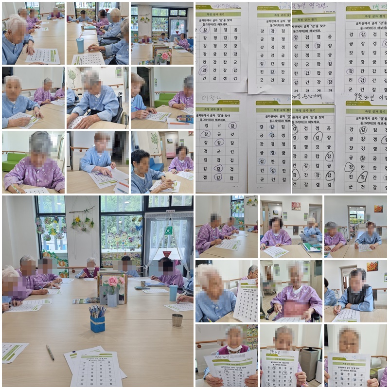 어르신들과 특정 한글 단어 찾기를 하며 활동지를 완성해보는 시간을 가졌습니다. ~^^