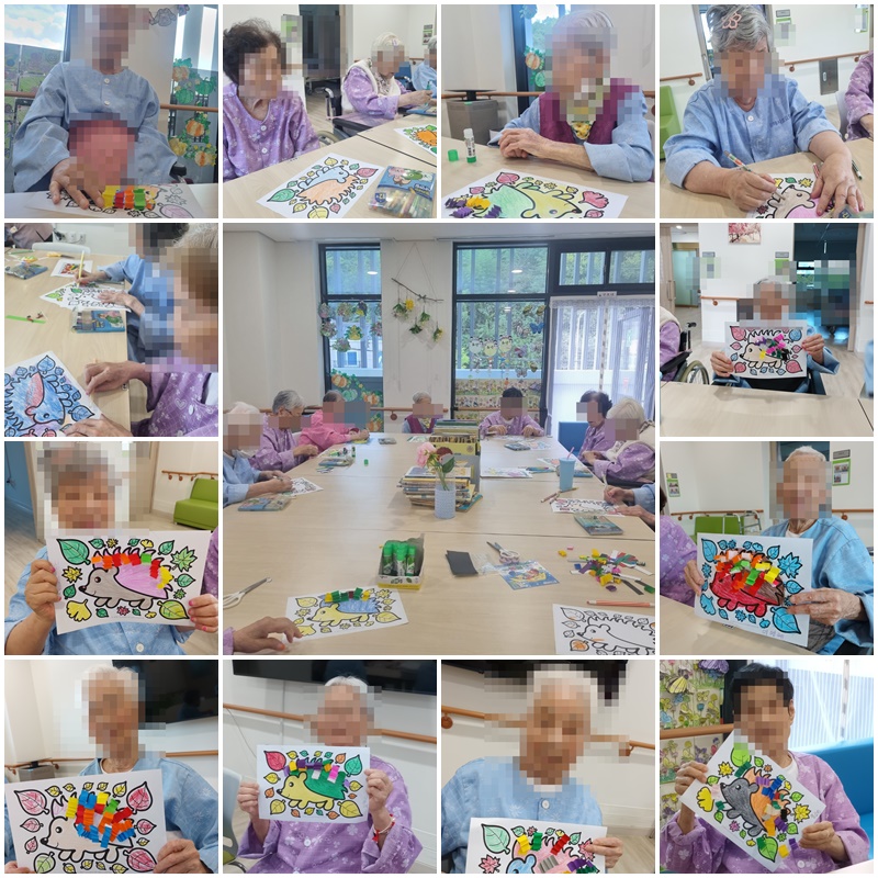 색종이를 오려 붙여 고슴도치를 꾸며 보는 시간을 가졌습니다. ~^^