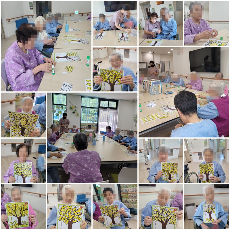 청량한 가을이 왔습니다. 어르신들과 나뭇잎으로 단풍 나무를 꾸며보는 시간을 가졌습니다. ~^^