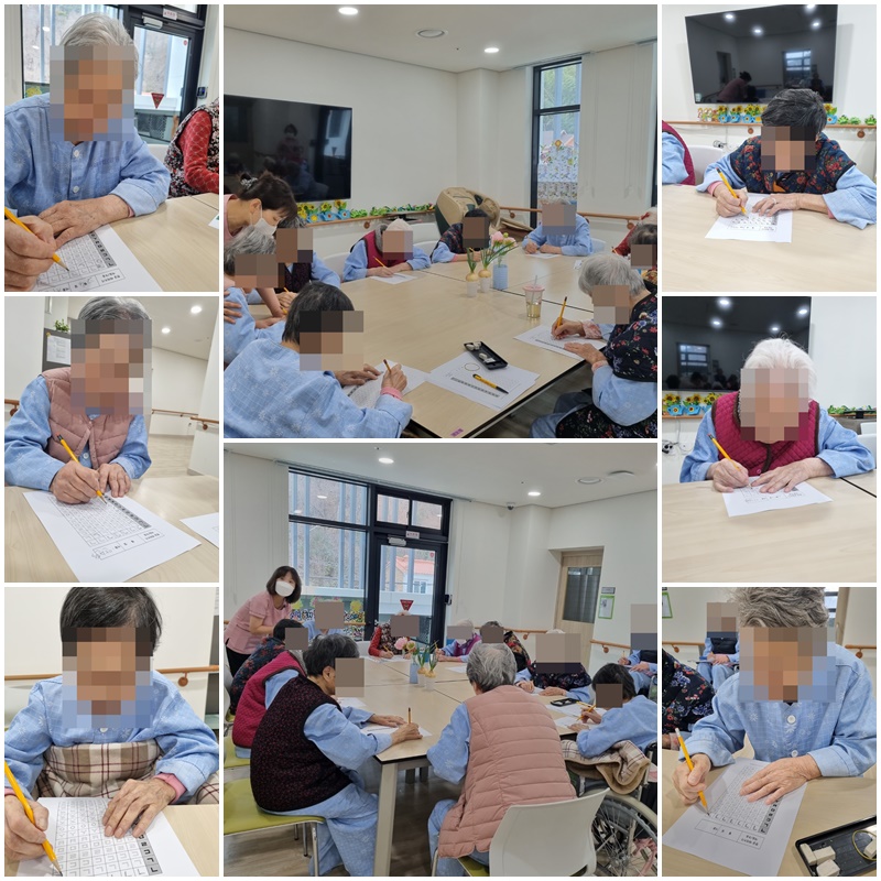 어르신들과 자음, 모음 따라쓰는 한글교실 프로그램을 진행하였습니다.
