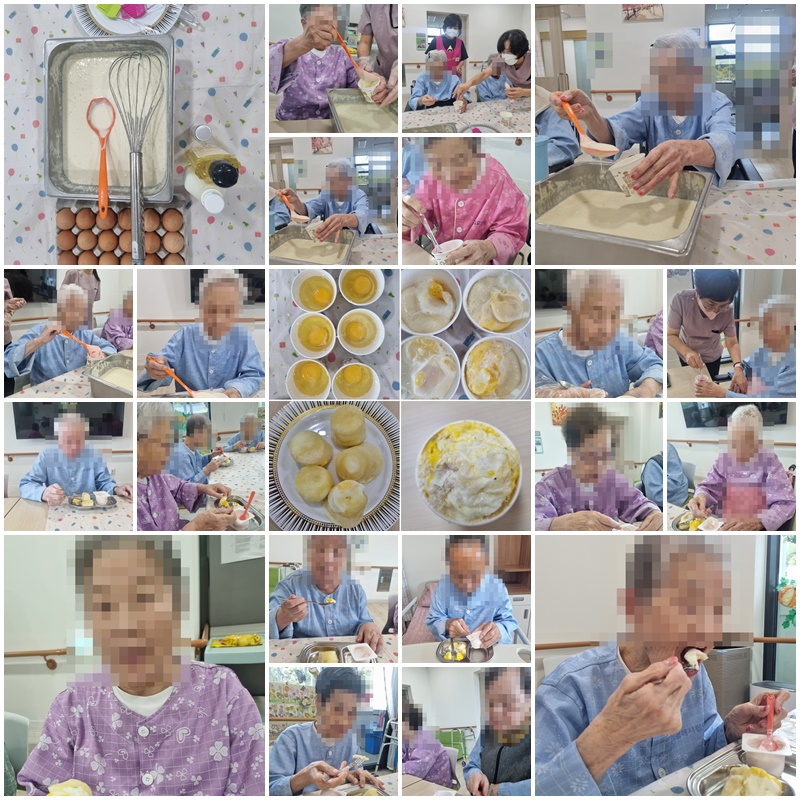 어르신들과 핫케익가루를 이용하여 '계란 톡 ♩♪♬' 맛있는 컵 계란빵을 만들어 보았습니다.~^^