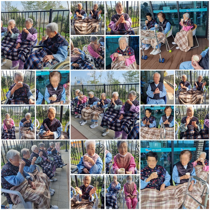어르신들과 청명한 가을 날 앞뜰 산책을 나왔습니다.~★