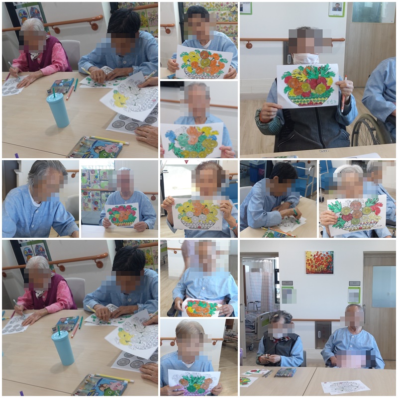 어르신들과 가을 꽃인 국화를 입체적으로 꾸며 보는 시간을 가졌습니다. ~^^