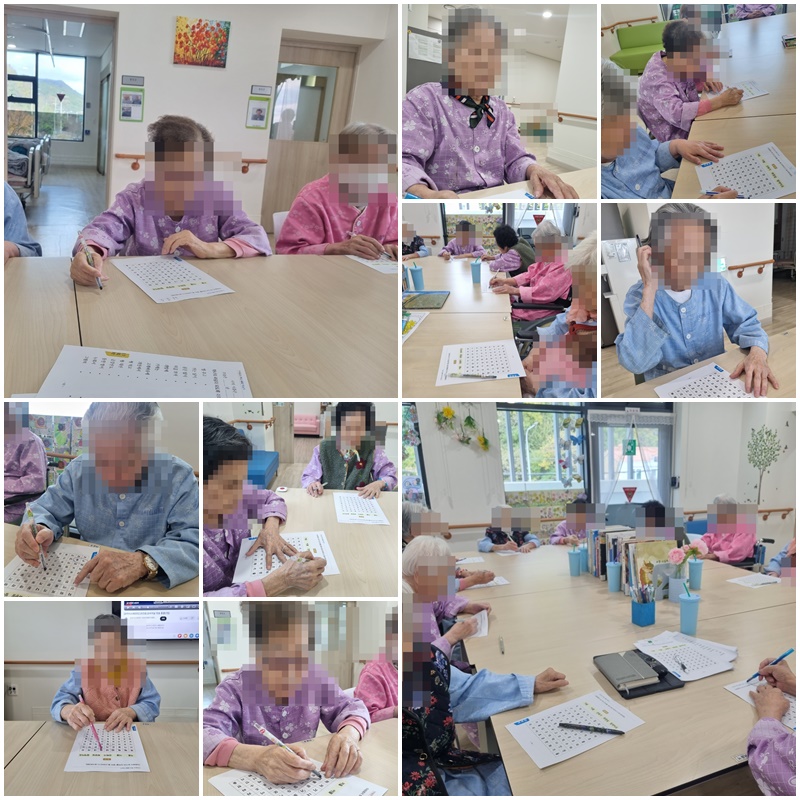 어르신들과 단어 찾아 쓰기 하며 활동지를 완성해 보는 시간을 가졌습니다. ~^^