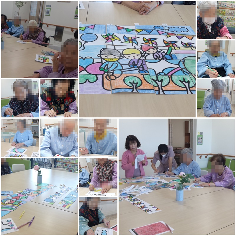 어르신들과 협동화를 완성하여 환경을 꾸며 보는 시간을 가졌습니다.