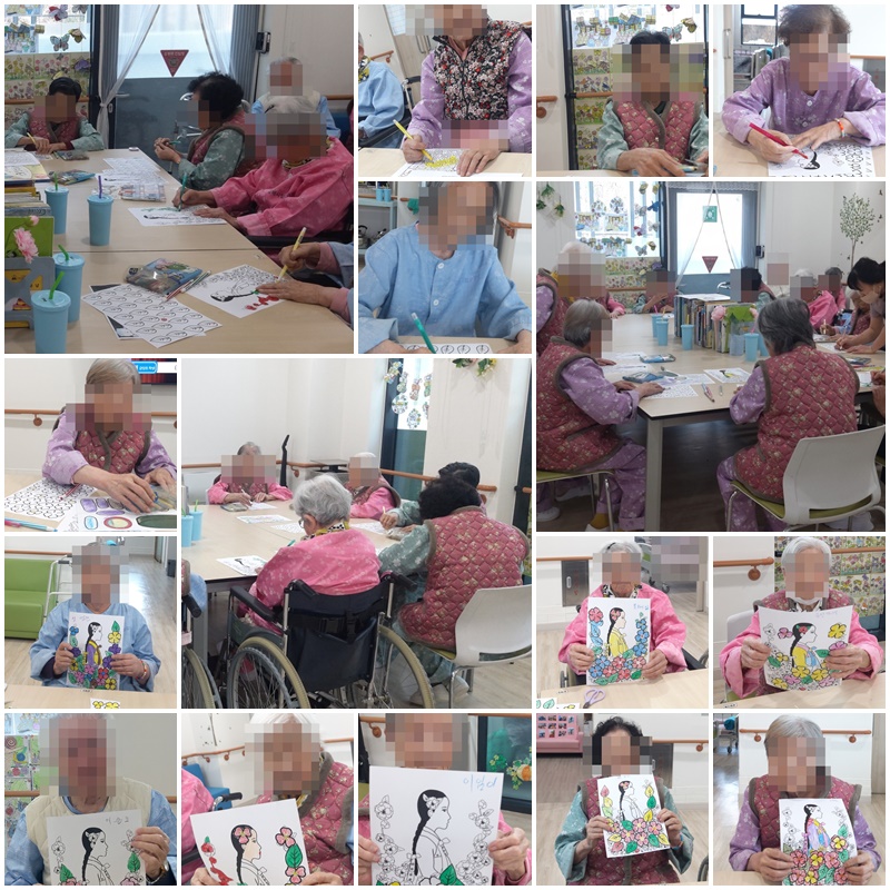 어르신들과 동백 아가씨를 꾸며 족자를 만들어 보는 시간을 가졌습니다. ~^^