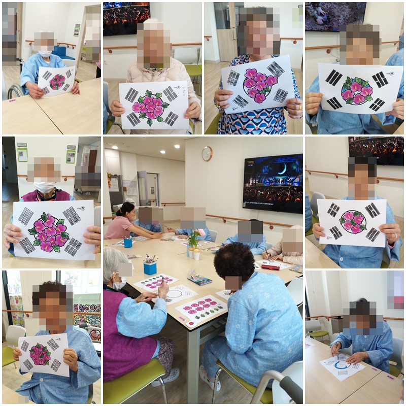 어르신들과 3.1절을 맞아 태극기 만들기를 해보았습니다.~^^