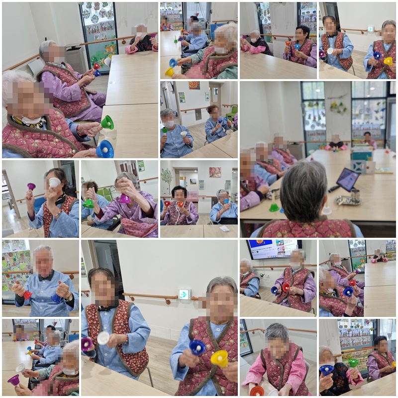 어르신들과 핸드벨을 이용하여 신나는 동요를 연주해 보는 시간을 가졌습니다. ~^^