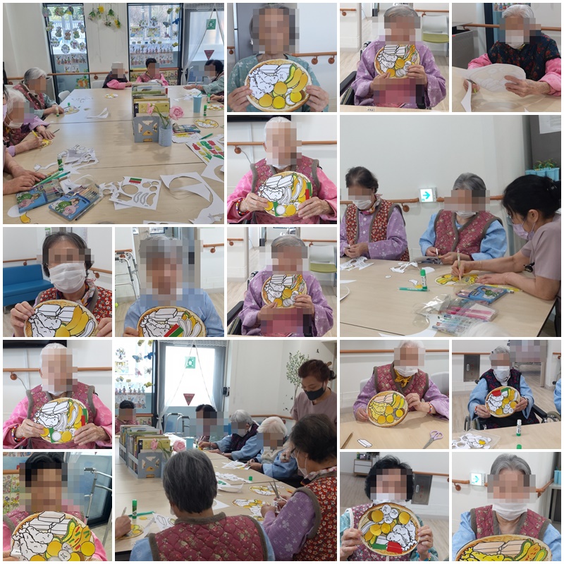 어르신들과 전 바구니에 전을 올려 활동지를 완성해보는 시간을 가졌습니다. ~^^